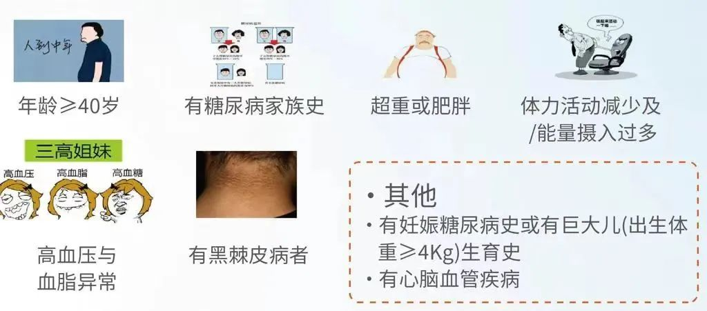 具备以下因素之一者为糖尿病高风险人群: