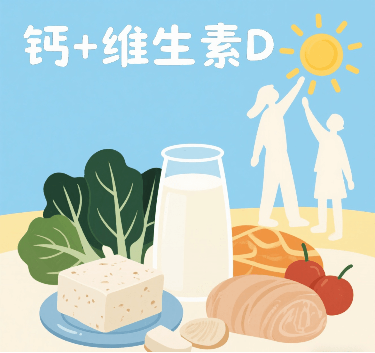 1.营养(多吃高钙食物:🥛牛奶(每天300毫升 )、🥜豆制品、🥬深绿色蔬菜)、运动、晒太阳(每天晒10-20分钟🌞),有利于促进或保持骨量。