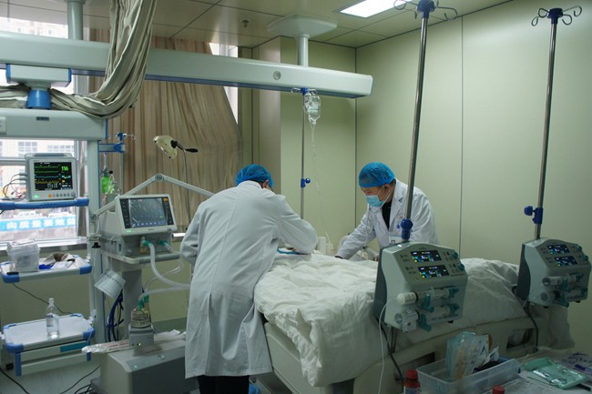 由于患者病情危重,肺功能非常差,动脉血氧饱和度一直在70%左右,甚至更低,暂时无法脱机拔管。为避免患者肺部感染加重、保持呼吸道通畅及进一步提高血氧饱和度,从而改善患者病情。在市人民医院耳鼻喉科李昌武主任的技术指导下,于21日下午17时成功为该患者施行气管切开术。